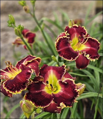 SOIL: Daylilies love rich, loose, well drained soil full of nutrients. This is really no different than most flowering plants. If your soil is clay, you need to amend it if you want super plant performance. Raised beds are a good option. We have sandy loam here at the farm, and we add to that finely ground aged pine bark mulch, and then add in alfalfa pellets, cottonseed meal, and corn meal. You will want to check the soil PH, as 6.5 is ideal for daylilies.